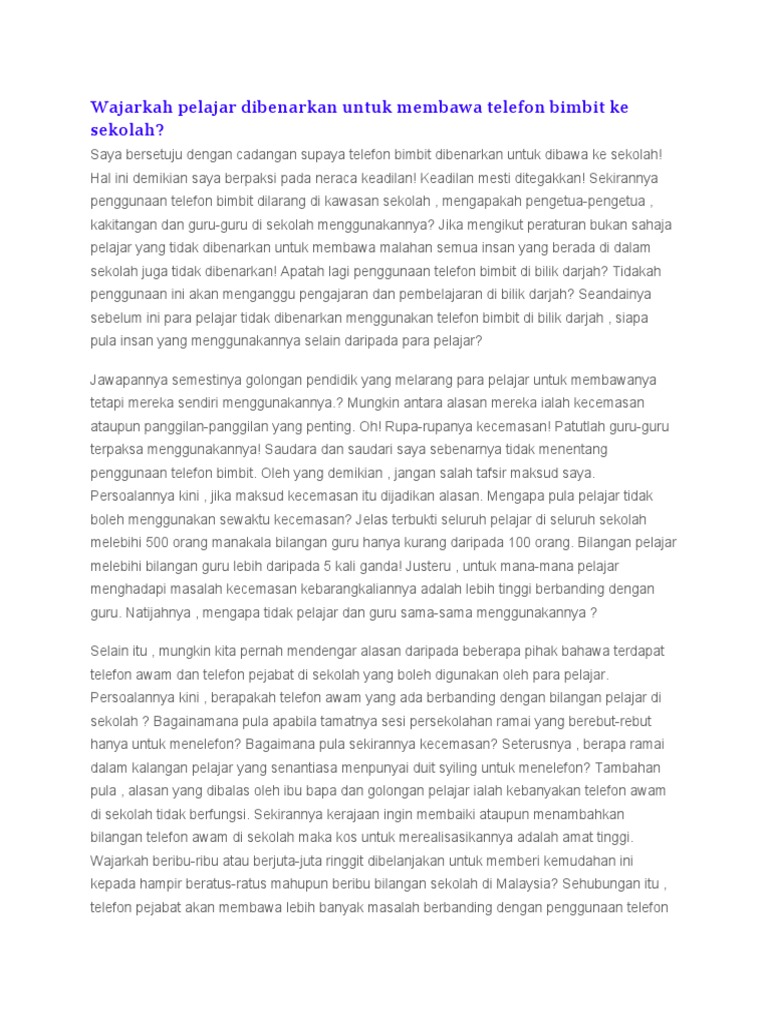 Keburukan Penggunaan Telefon Bimbit Dalam Kalangan Pelajar Sekolah from imgv2-1-f.scribdassets.com Wajarkah pelajar dibenarkan untuk membawa telefon bimbit ke sekolah. Jadikan kes berikut sebagai pengajaran buat anda sekeluarga. Kebaikan dan keburukan telefon bimbit pada masa kini telefon bimbit pintar menjadi kegilaan para remaja mahupun orang dewasa. Para guru yang dihormati, pihak ytl foundation ingin menghulurkan bantuan dengan pemberian telefon bimbit secara percuma, lengkap dengan data 120gb ( iaitu 10gb sebulan selama 12 bulan) bagi membantu para pelajar dari. Telefon bimbit adalah penting kerana membawa pelbagai faedah kepada segenap masyarakat. Bantulah kami untuk salurkan telefon bimbit percuma. Memang tidak dapat dinafikan bahawa penggunaan telefon bimbit banyak memberikan faedah kepada para pelajar. Mengikut kajian, telefon bimbit akan mengeluarkan sejenis gelombang bunyi yang akan menjejaskan kesihatan.