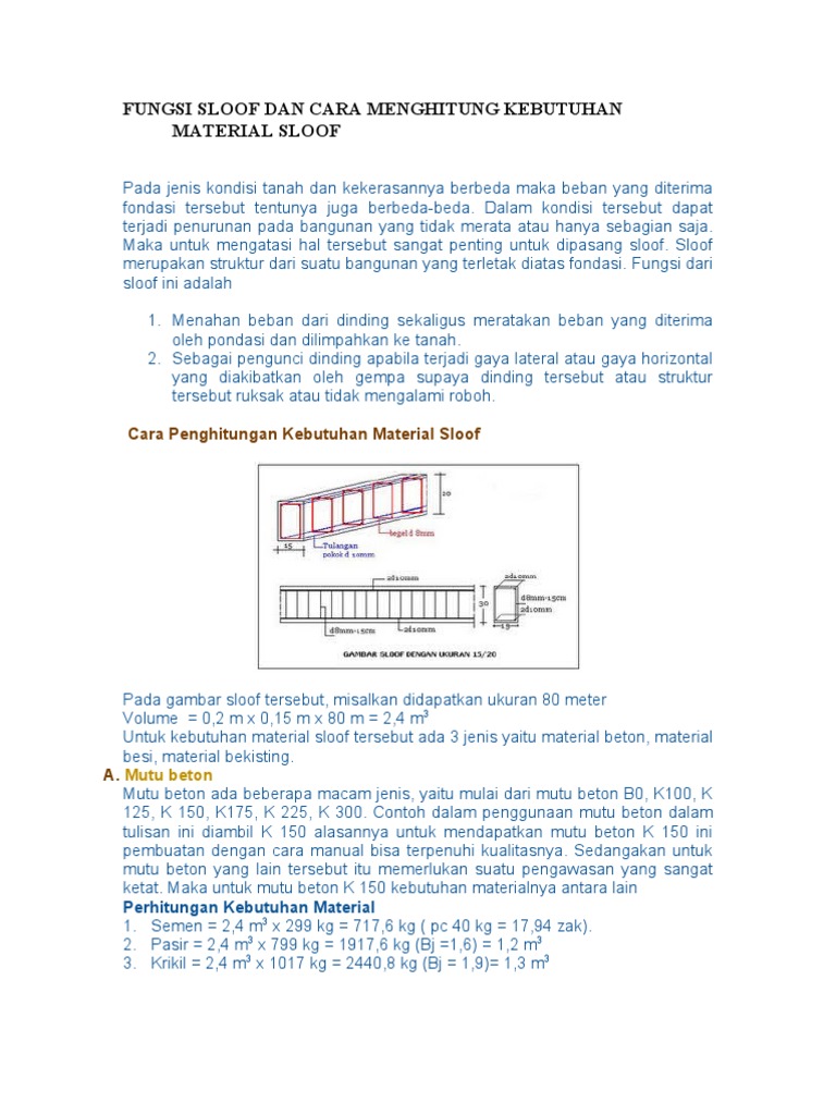 Sloof merupakan elemen struktur pada rumah yang terletak di bawah lantai 1 atau di atas pondasi berupa beton bertulang. Hitung panjang total sloof yang akan kita hitung volumenya, dengan melihat gambar disamping kita bisa menghitung berapa panjang sloof. Pondasi menerus adalah pondasi yang digunakan kebanyakan orang yang membuat bangunan tidak bertingkat, seperti rumah,ruko dan perumahan dengan ya sekian adalah cara menghitung volume pondasi batu belah menerus. Bagaimanca cara memasang sloof dan melakukan pengecoran? Cara menghitung kebutuhan material untuk sloof. Setelah pondasi batu kali selesai dan kolom cakar ayam telah dicor, selanjutnya buatlah anyaman sloof langsung diatas pondasi. Cara menghitung kebutuhan bekisting triplek ilmusipil com 28 09 2019 untuk. Menghitung tulangan pondasi beban yang bekerja pada pondasi adalah beban dari reaksi tegangan tanah yang bergerak vertikal ke atas akibat adanya tulangan pondasi dihitung berdasarkan momen maksimal yang terjadi pada pondasi dengan asumsi bahwa pondasi dianggap pelat yang terjepit. Struktur sebuah bangunan haruslah lengkap, yaitu terdapat sloof, kolom dan ring balk dengan ikatan sambungan yang kaku, stabil, dan homogen. Cara menghitung biaya pondasi, perhitungan biaya pondasi, material pondasi, tukang dan pekerjaan pondasi, contoh perhitungan untuk anda yang ingin tahu bagaimana cara menghitung pondasi untuk bangunan kami berikan contoh lengkapnya mengenai menghitung volume dan rab. Mengapa, sebab besi sloof harus masuk kepada tiang kolom sehingga membentuk ayaman. Jadi penting untuk tahu cara menghitung volume pondasi seperti yang diuraikan oleh panduan 99.co indonesia berikut ini. Sloof adalah salah satu elemen struktur yang terletak diatas pondasi bangunan yang berfungsi untuk memperkuat rangkaian dinding pasangan bata.